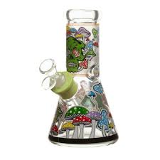 8" 7mm Mushroom Glass Bong - Glow in the Dark